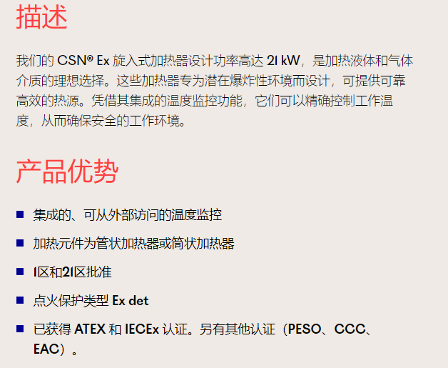 SCHNIEWINDT 旋入式加热器95EX 型系列