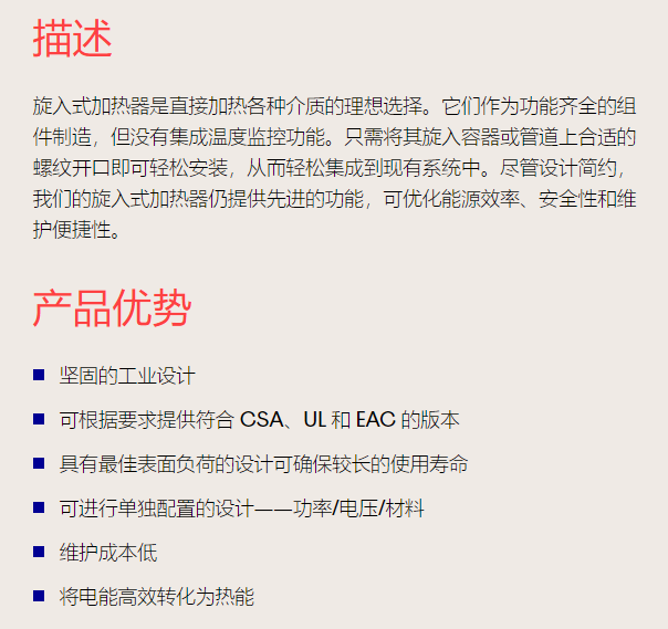 SCHNIEWINDT 旋入式加热器 ERC/ERCH型系列