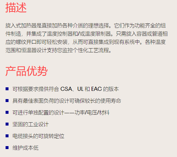 SCHNIEWINDT 旋入式加热器ERCT/ERCB系列